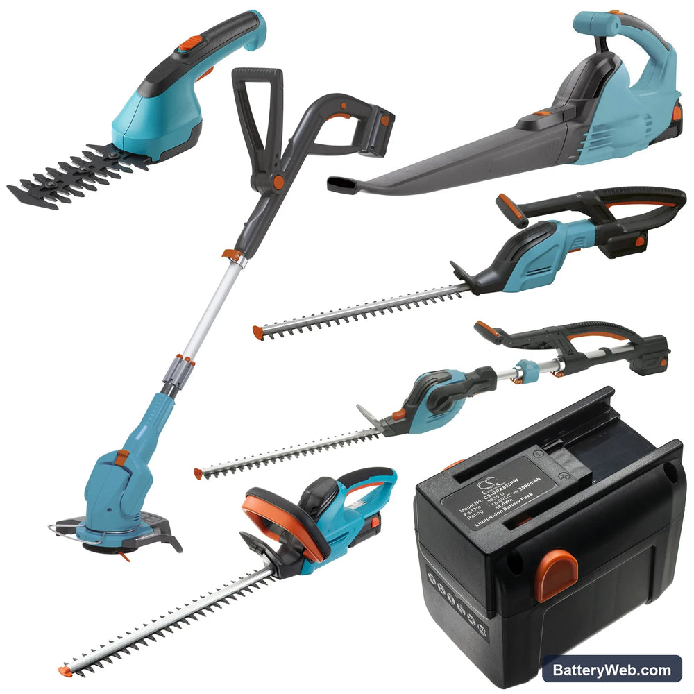This is an 18V 3000mAh (54Wh) Li-ion replacement battery for the Gardena AccuCut Li series of cordless lawn shears and grass shears. It fits the AccuCut Li 400, AccuCut Li 450, and related models that share Gardena's 18V battery platform. Voltage and capacity match the original spec exactly — no adapter, no modification required.