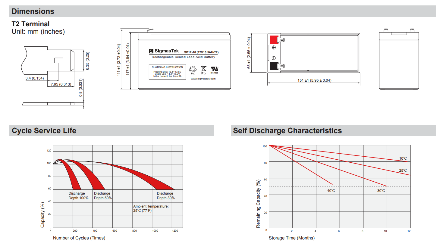 • Model Reference: SigmasTek 12 Volts 10.5 Ah F2