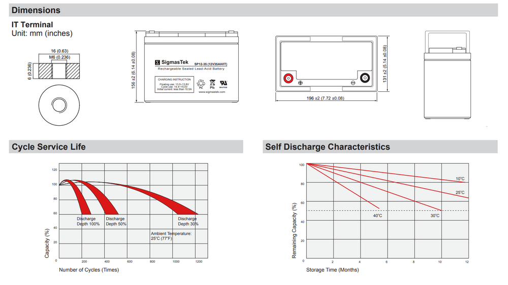 - Versatile Applications: While tailored for the IT Electric Scooter, this replacement battery also suits emergency lighting, security and fire alarm systems, consumer electronics, home & garden equipment, and select medical devices that accept a 12V 35AH SLA battery.