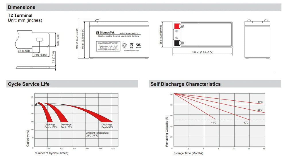 As a high-performance UPS battery replacement specifically matched to the APC S000RM24, this SigmasTek battery is engineered for dependable cycle life and stable discharge characteristics. Its 7.5Ah capacity is well-suited for smaller UPS units, providing enough reserve to safely shut down equipment or to bridge short outages. The F2 terminal ensures secure and easy connections during installation, minimizing downtime and simplifying service.