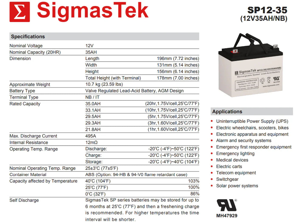 - Long life and reliable performance: Built for low self-discharge and superior performance, these SigmasTek batteries provide a long-lasting battery solution so your Best Power FERRUPS ME 2.1KVA performs reliably when power is critical.
