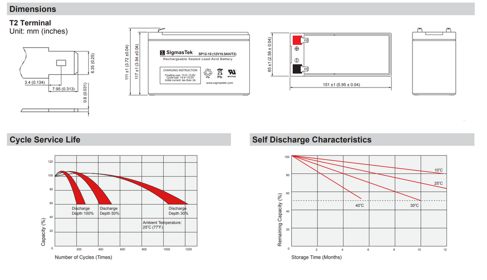 - Amp-Hours: 10.5 AH (listed as SP12-10 (12 V 10.5 AH))