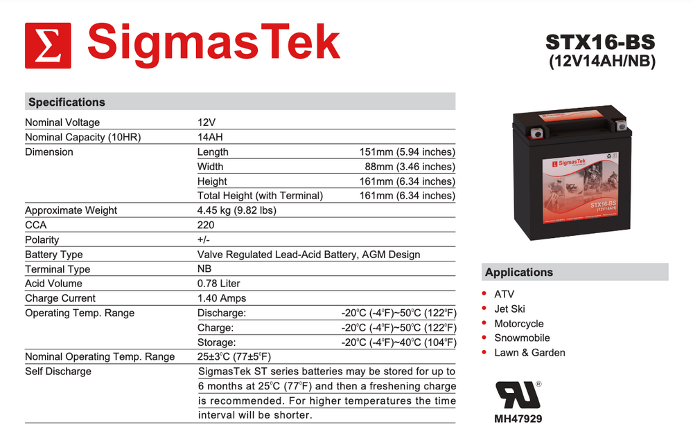 - Maintenance-free convenience: No electrolyte top-ups required — install and ride with confidence.